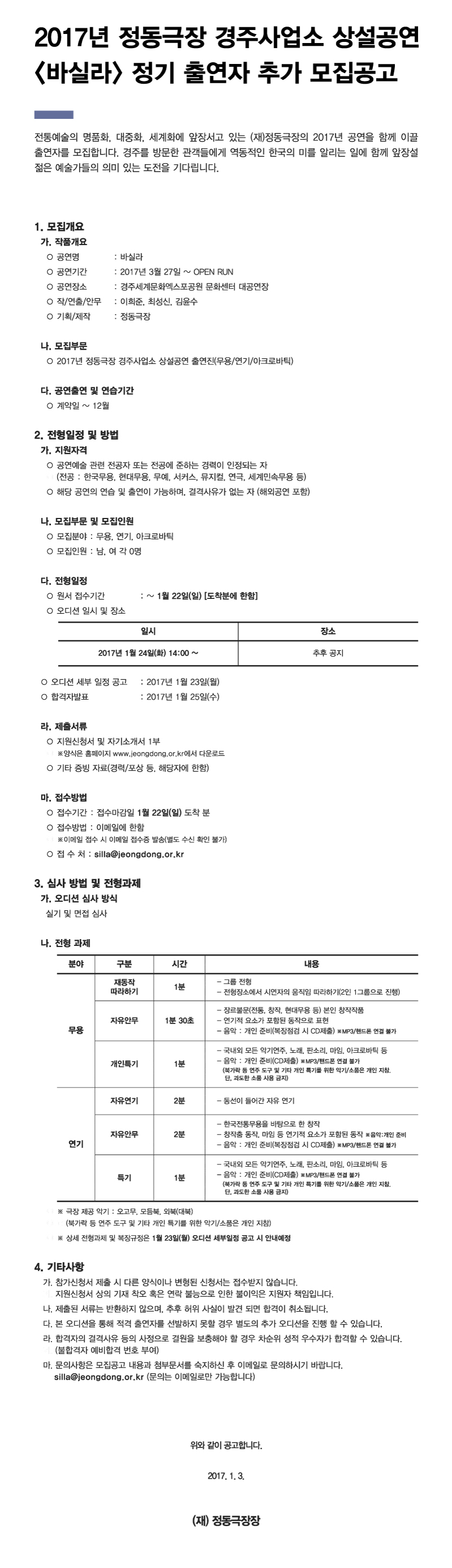 2017³â Á¤µ¿±ØÀå °æÁÖ»ç¾÷¼Ò »ó¼³°ø¿¬ <¹Ù½Ç¶ó> Á¤±â Ã⿬ÀÚ Ãß°¡ ¸ðÁý°ø°í