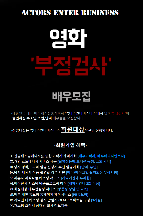 ´ëÇѹα¹´ëÇ¥ ¹è¿ìij½ºÆÃÁß°³È¸»ç ¿¢Åͽº¿£ÅͺñÁî´Ï½º ¿µÈ ºÎÁ¤°Ë»ç¿¡ Ã⿬ÇÏ½Ç ¿¢Åͽº¸¦ ¸ðÁý